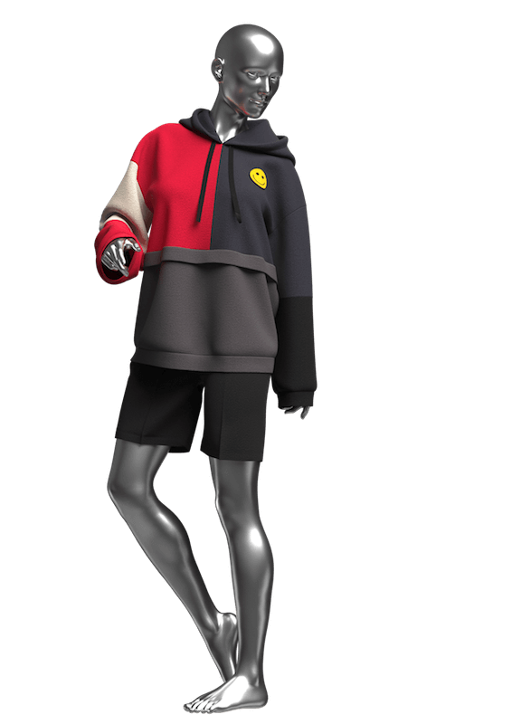 Удлиненный худи в стиле over size cо спущенной линией плеча, потайным карманом. Длина рукавов регулируется резинкой и стоппером. В изделии использовано 4 цвета плотного хлопкового трикотажа.