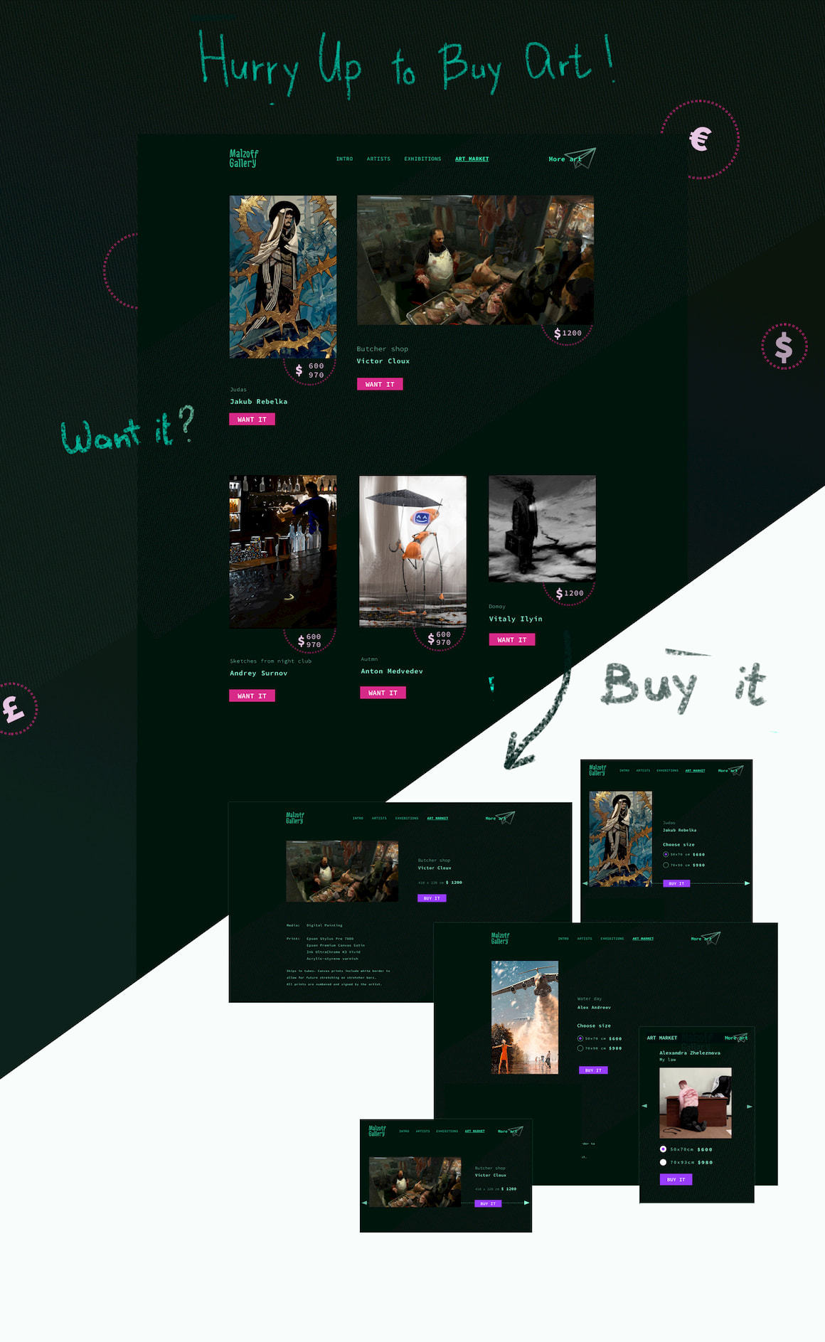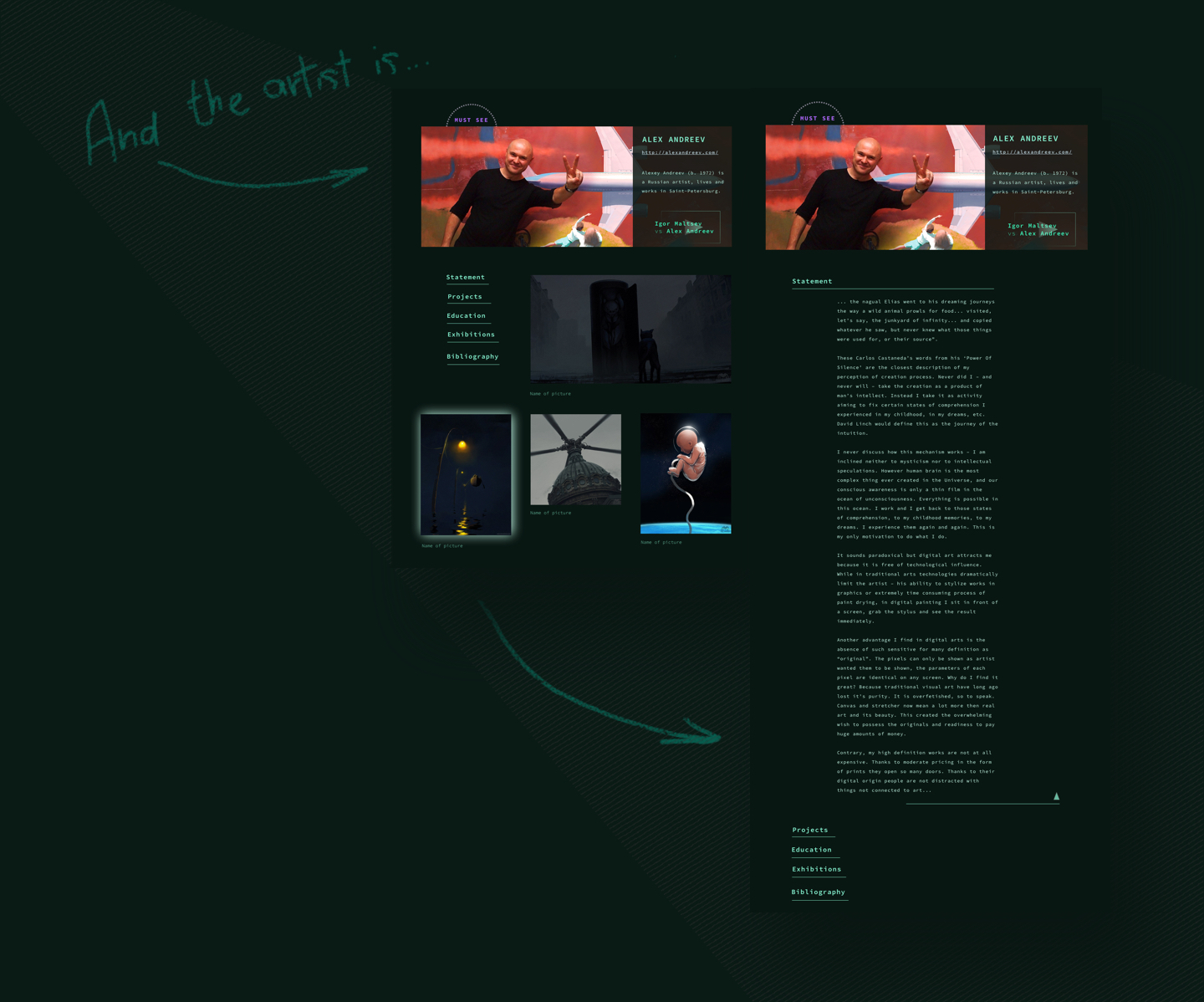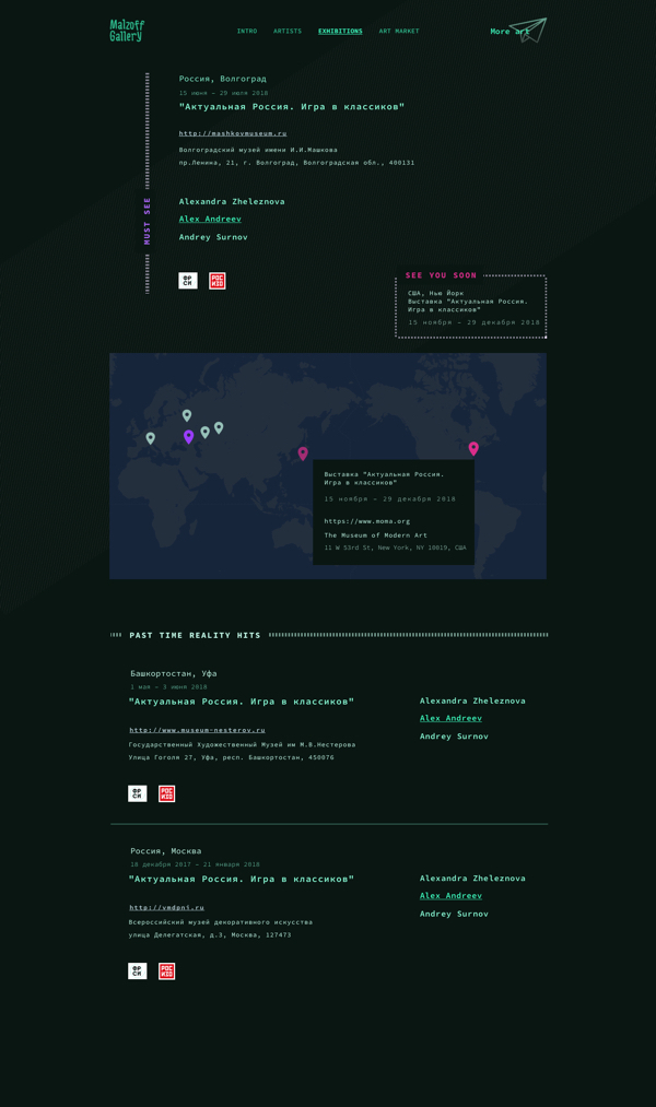 Вторая по важности страница галереи. Показывает глобальность российского диджитал арта. По дефолту открывается страница либо с действующим либо с ближайшим мероприятием.